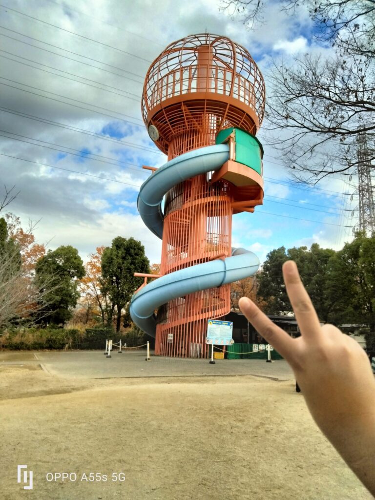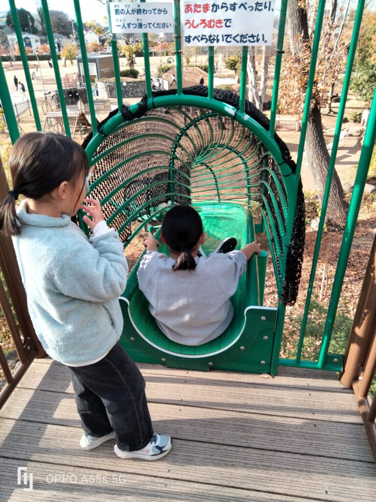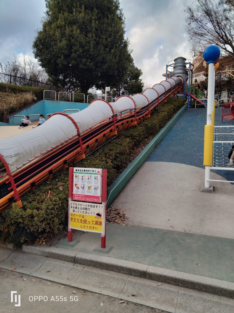徒歩5~10分の場所にある大型遊具広場へ行ってきました。そこには長い様々な面白そうな滑り台が3台もあり子供たちはやる気全開でした。