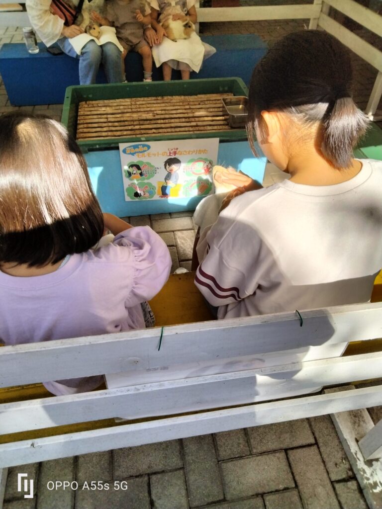 入園し入るとイベントが行われていました。それはどうぶつふれあいコーナーが開催されておりモルモットが4匹程ほどおり、参加者はベンチに座りタオルを膝にかけられ可愛いモルモットを担当者の方が連れてきてくれて約5分間ふれあえるというものです。また参加費は無料です。相変わらずの安さです。