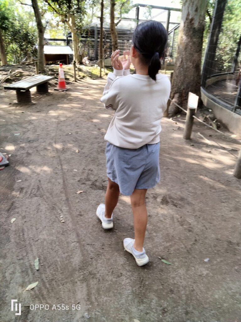 ちょっとしたアクシデントがありました。園内にこちらを見ていて近づいても逃げ出さない鳥がおりました。子供たちが面白がって呼びかけますがこちらを見たまま逃げません。こちらがさらに近くに行き呼びかけますが動きません。そうしていると鳥の方から子供たちに近づいてきて、いよいよ嘴(くちばし)で突っつかれそうな勢いになり逃げておりました。