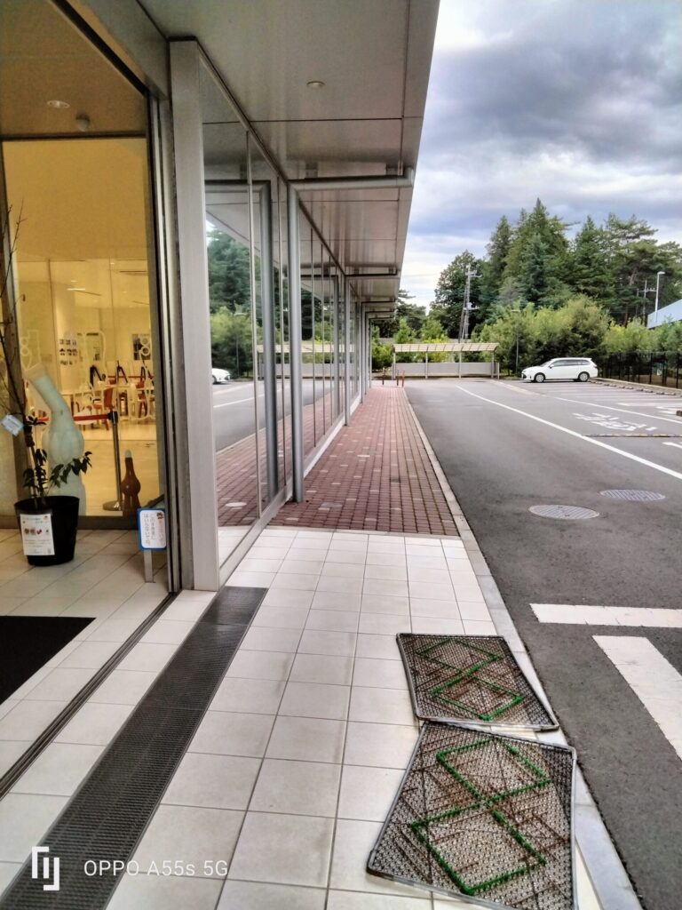 駐車場へ到着すると工場の美しいエントランスが見えてきました。
