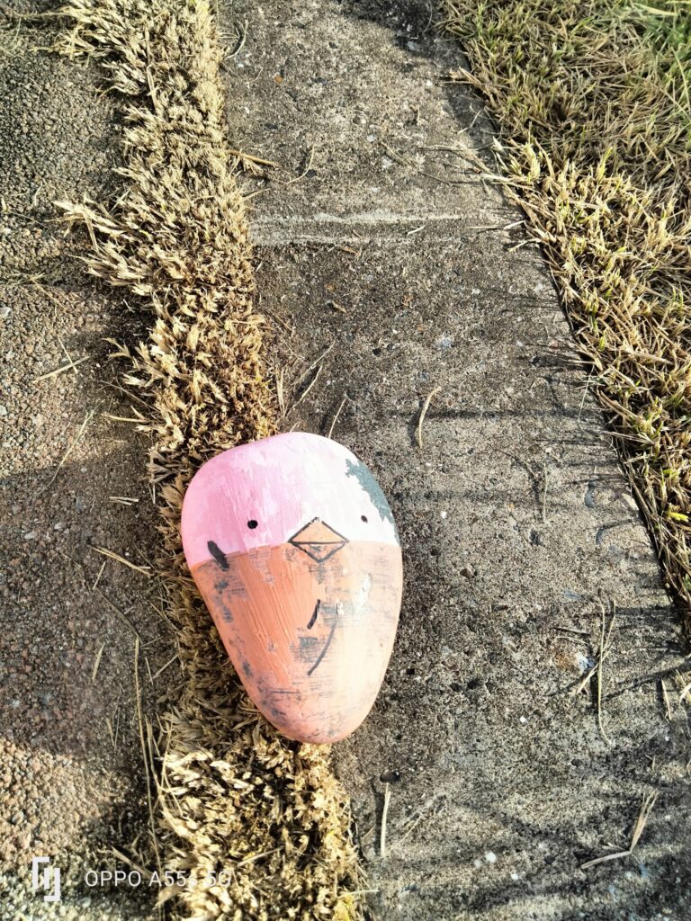 駐車場までの帰り道歩いていたらカプスケの絵が描かれた石が落ちていました。気づかず通り過ぎてしまいそうでした。