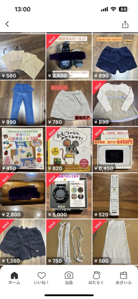 それは誰かの不用品や使用しない物品は他の誰かの必要なものであることがわかりました。時には他の出品をみても誰が買うのだろうと疑問に思うものが買いとられていたりするものもありました。