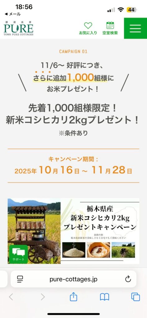 - 公式ホームページ予約だとメールで限定キャンペーンを教えてくれる