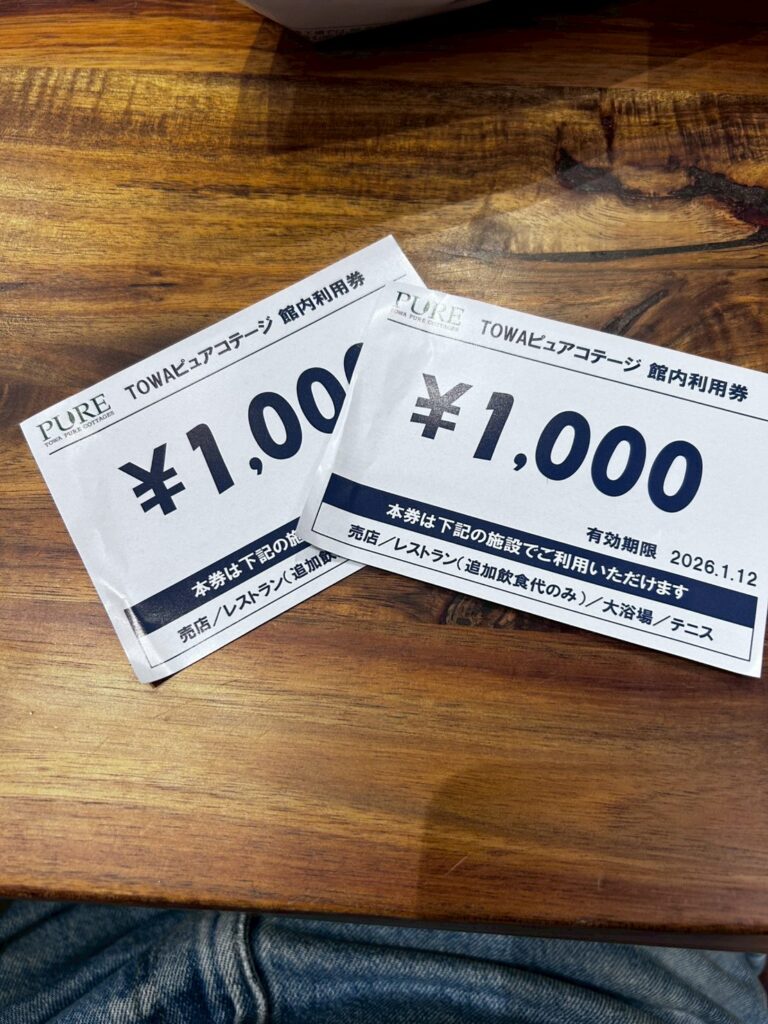 ちなみに夕朝食付きはフロント到着順に夕朝食の時間が選択できるようなので、できるかぎり早めの到着したほうが良いです。私たちは到着が遅く、選択の余地があまりありませんでした。ご注意ください。またお米2kgと館内利用券2000円分いただきました。ありがたい限りです。