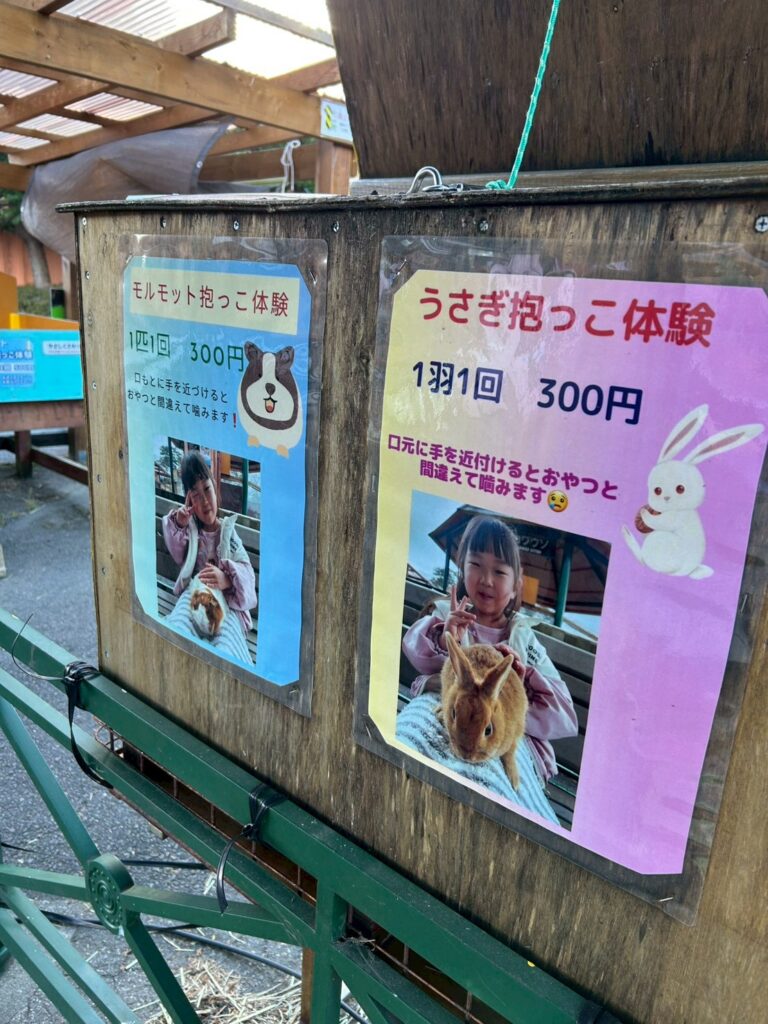 またアトラクション以外にも動物にも触れ会うことができ、子供たちは300円払いうさぎを膝に乗せ触れ合っていました。